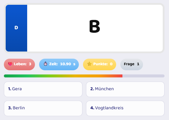 Die Fragen werden im Laufe des Spiels schwieriger - Bist du in der Lage auch kleinere Landkreise zu erkennen?